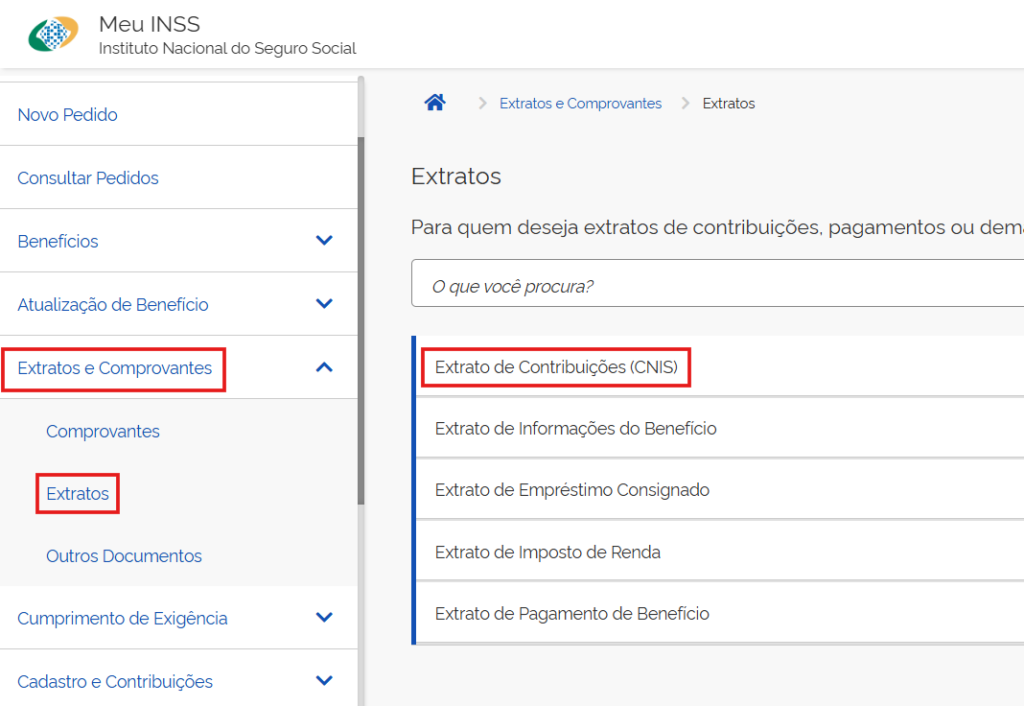 Basta acessar o serviço “Extrato de Contribuição (CNIS)”. Ele lista todos os seus vínculos empregatícios e contribuições realizadas ao longo da vida. É fundamental conferir se todos os períodos estão corretos para não atrasar sua aposentadoria.